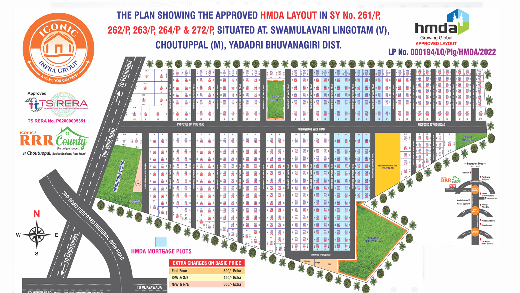 @Choutuppal, adjacent to Proposed Regional Ring Road (RRR County) 85 Acre ProjectProposed HMDA RERA Approved Venture.